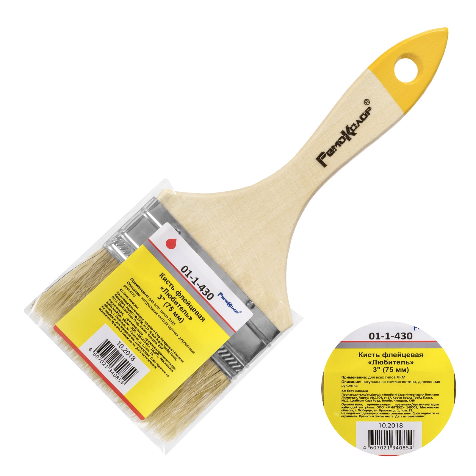 Кисть плоская РемоКолор Любитель натур.светлая щетина 75мм в Комсомольск-на-Амуре