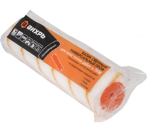 Валик универсальный Вихрь ПРОФ для всех типов работ и ЛКМ 250/48/8 для выполнения качественных малярных работ и обеспечения максимальной производительности. Подходит для всех типов лакокрасочных материалов, для большинства поверхностей, окраски больших площадей (потолков, стен, фасадов). Универсальный сменный валик 250 мм для гладких и рельефных поверхностей, равномерно наносит ЛКМ, удобен для любых видов отделочных работ.