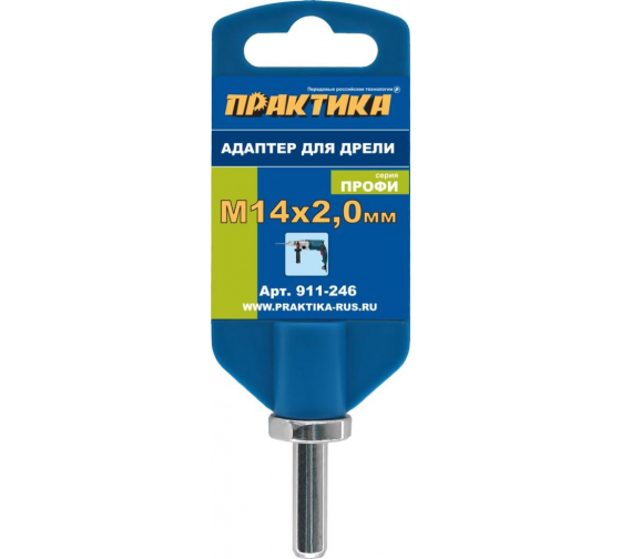 Адаптер для дрели ПРАКТИКА, хвостовик 8 мм, резьба М14*2 мм, для алмазных коронок, опорных тарелок