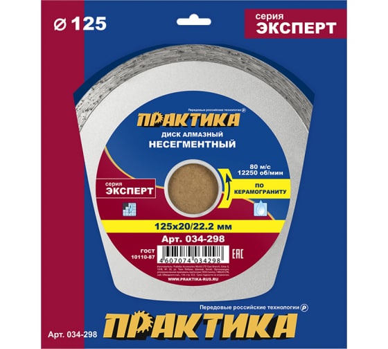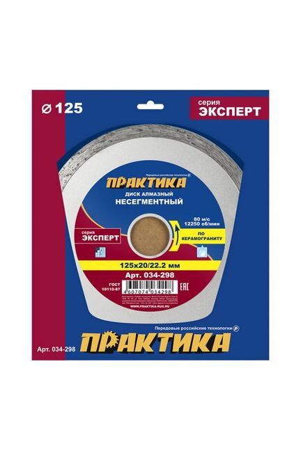 Диск алмазный несегментный ПРАКТИКА "Эксперт-керамогранит" 125х20/22 мм