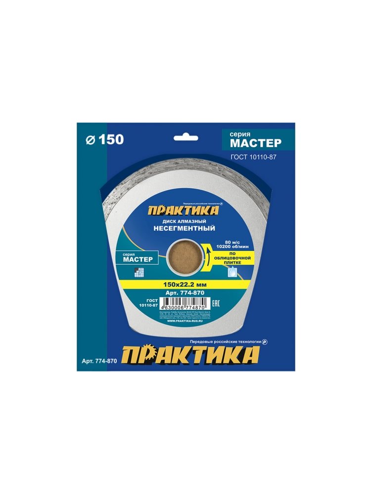 Оцените профессиональный подход к резке с алмазным диском марки «Мастер» размером 150×22 мм: он идеально подходит для работы с керамической плиткой, гранитом, мрамором и искусственным камнем в домашних и строительных условиях, обеспечивая точный чистый рез без сколов.