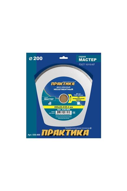 Диск алмазный несегментный ПРАКТИКА "Мастер" 200*25.4/22 мм