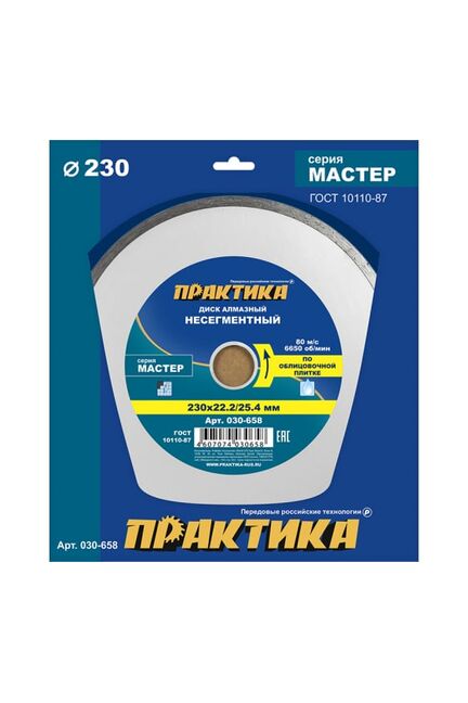 Диск алмазный несегментный ПРАКТИКА "Мастер" 230*25.4/22 мм в Комсомольск-на-Амуре