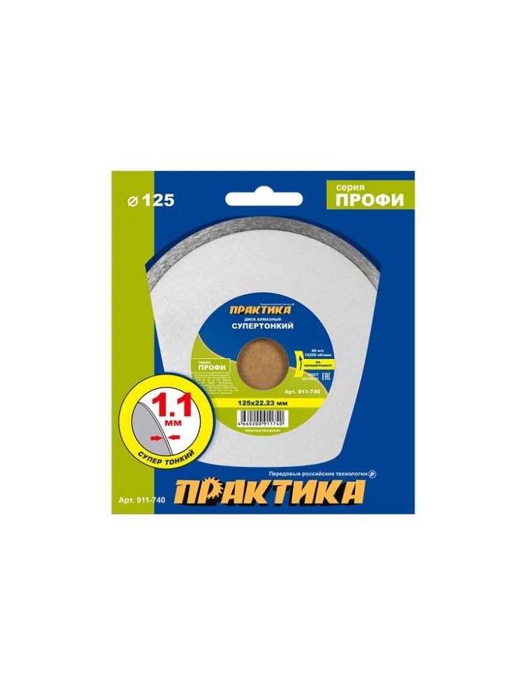 Диск алмазный несегментный ПРАКТИКА "Профи-Керамика" 125*5*22 мм, толщина 1,1мм в Комсомольск-на-Амуре