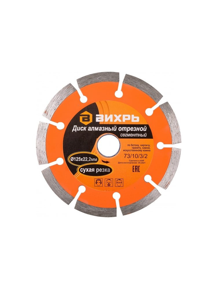 Диск алмазный отрезной сегментный ВИХРЬ 125х22,2 мм,сухая резка
