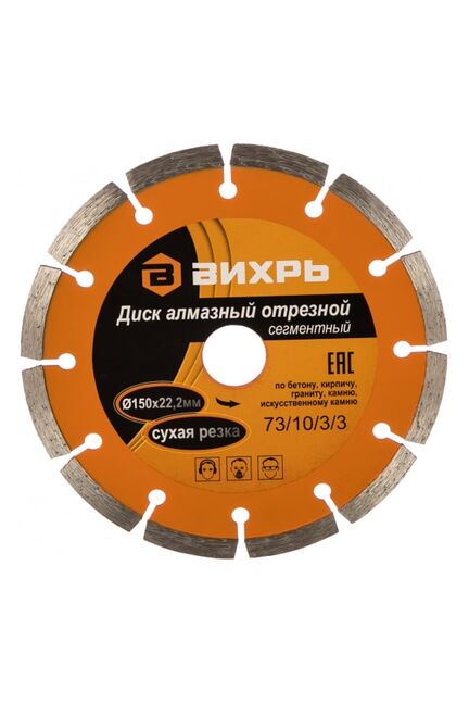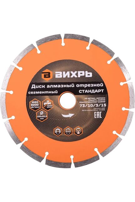 Диск алмазный отрезной сегментный ВИХРЬ 180х22,2 мм,сухая резка