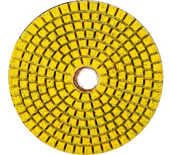 Диск диаметром 100 мм, зернистость №50, подходит для влажной шлифовки камня и плитки, долговечен и обеспечивает чистую обработку без сколов.