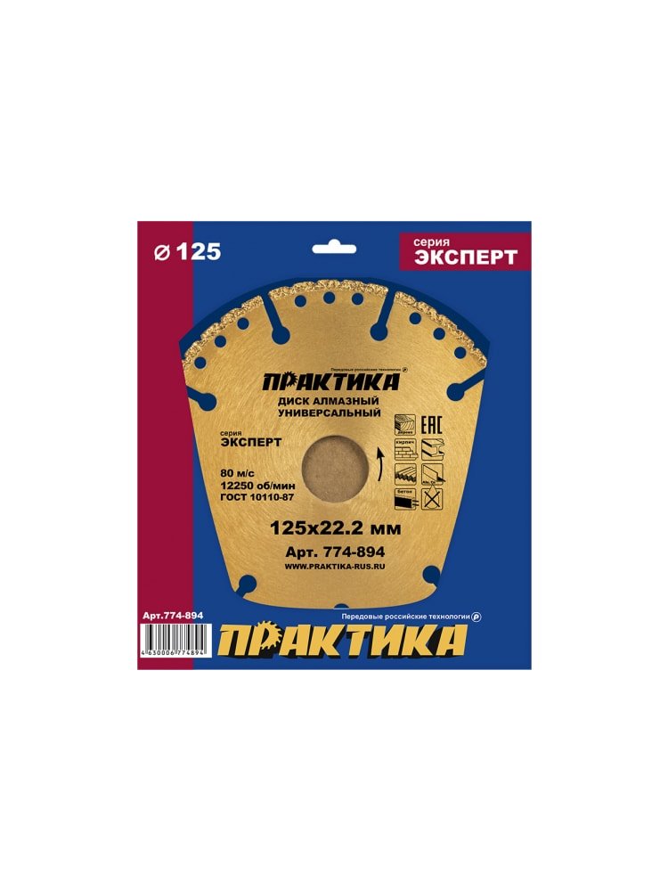 Диск алмазный сегментный ПРАКТИКА "Эксперт-Универсал" 125х22 мм, сегмент 10 мм