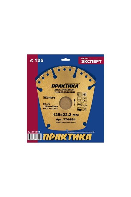 Диск алмазный сегментный Эксперт-Универсал (125х22.2 мм) ПРАКТИКА предназначен для ручных резчиков. Применяется для сухой резки любых материалов от абразивных (асфальт, силикатный кирпич) до металлических профилей и дерева. Вентилируемая конструкция тела диска обеспечивает воздушное охлаждение и предотвращение перегрева. Идеально подходит для пиления материалов неоднородного состава: армированный бетон, перекрытия крыши с деревянной или металлической обрешеткой, перегородки с профилями и наполнителями, вскрытия полов. Рекомендован в качестве спасательных работ для оперативного вскрытия металлических дверей, перегородок крыш, пиления твердых металлических изделий: замков, стержней, пальцев, пружин, валов, дверных петель.
