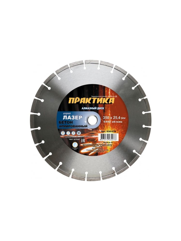 Диск алмазный сегментный ПРАКТИКА "Лазер-45-Бетон" 350х25,4 мм, сегмент 10 мм