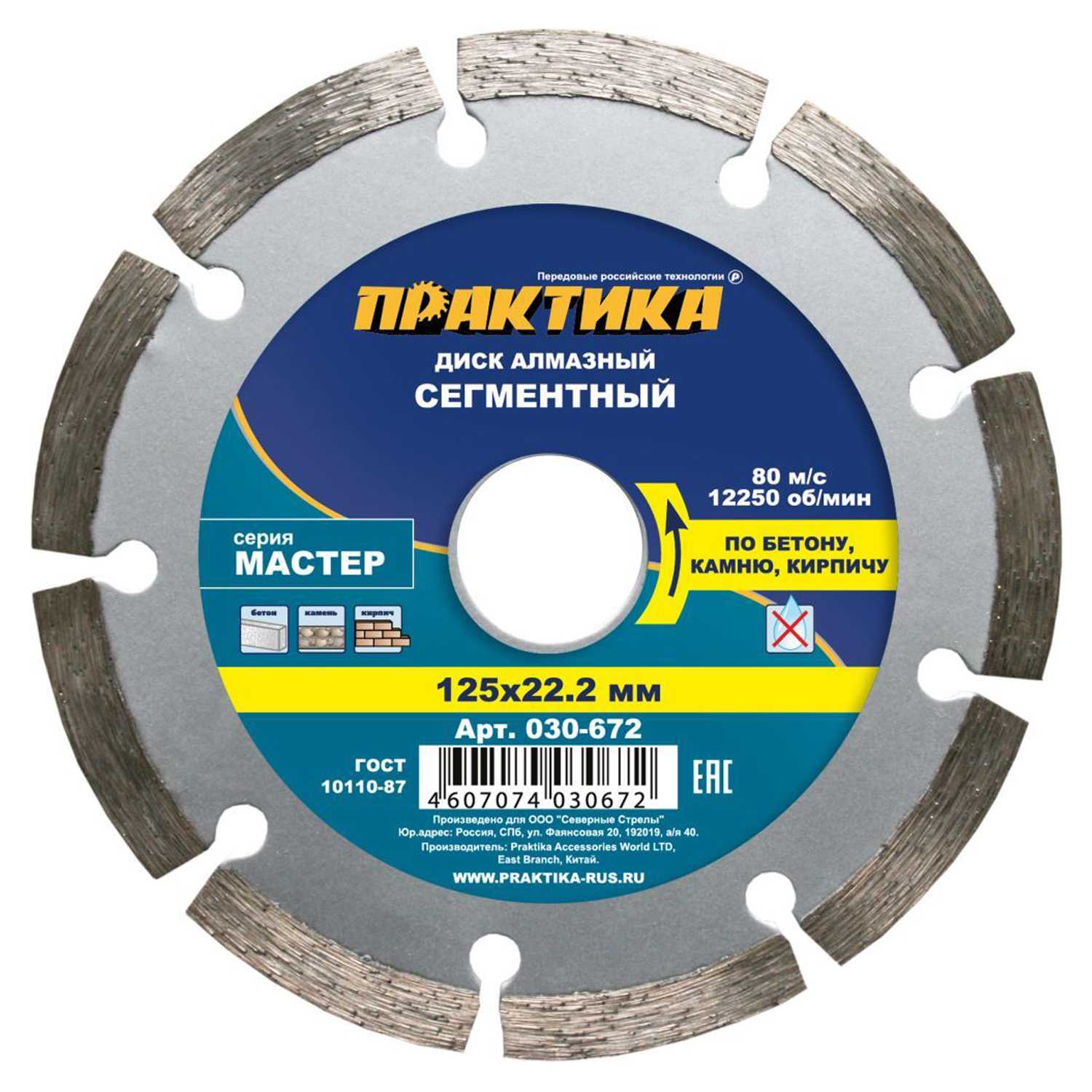 Диск алмазный сегментный ПРАКТИКА "Мастер" 125x22мм коробка в Комсомольск-на-Амуре