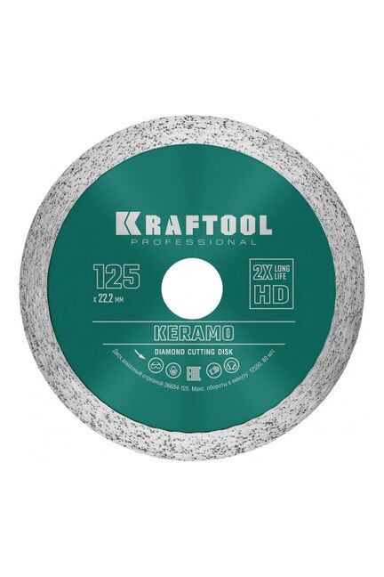 Диск алмазный отрезной сплошной Keramo KRAFTOOL 36684-125 предназначен для резки керамогранита с помощью угловой шлифовальной машины.