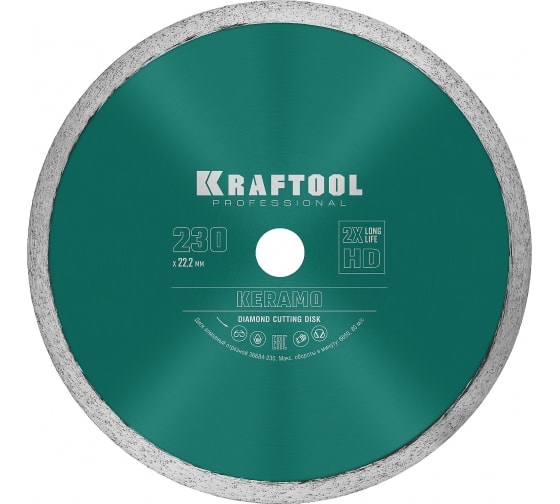 Диск алмазный отрезной сплошной Keramo KRAFTOOL 36684-230 предназначен для резки керамогранита с помощью угловой шлифовальной машины.