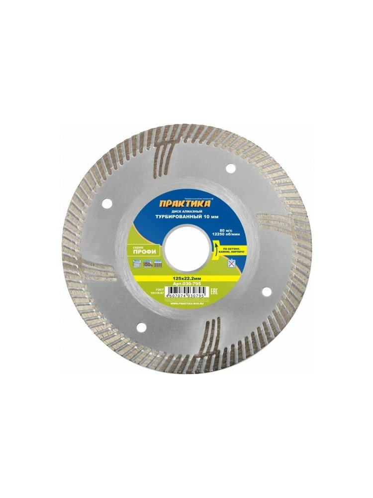 Инструмент для профессиональной резки — идеальный выбор для работ по бетону, кирпичу, граниту и другим минеральным материалам. Турбированный алмазный диск диаметром 125 мм с сегментом 10 мм обеспечивает высокую скорость и чистоту реза без сколов, значительно увеличивает срок службы благодаря усиленному алмазному напылению.