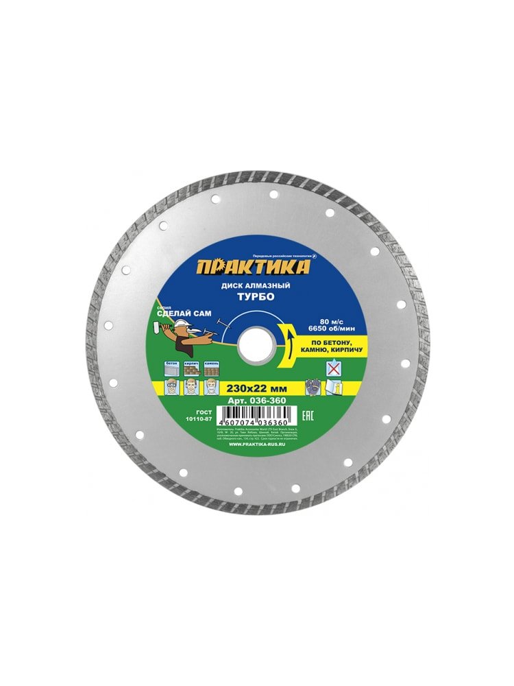 Турбированный алмазный диск — эффективное решение для быстрого и аккуратного реза строительных материалов: бетона, кирпича, тротуарной плитки и камня. Надёжная фиксация на болгарке (УШМ) с посадочным отверстием 22,2 мм обеспечивает легкость монтажа и высокую производительность. Диаметр 230 мм подходит для глубокого реза. Турбо-насечка на рабочей поверхности минимизирует сколы и ускоряет работу, обеспечивая чистый срез даже на твёрдых материалах.
