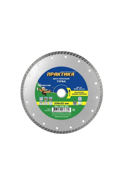 Турбированный алмазный диск — эффективное решение для быстрого и аккуратного реза строительных материалов: бетона, кирпича, тротуарной плитки и камня. Надёжная фиксация на болгарке (УШМ) с посадочным отверстием 22,2 мм обеспечивает легкость монтажа и высокую производительность. Диаметр 230 мм подходит для глубокого реза. Турбо-насечка на рабочей поверхности минимизирует сколы и ускоряет работу, обеспечивая чистый срез даже на твёрдых материалах.