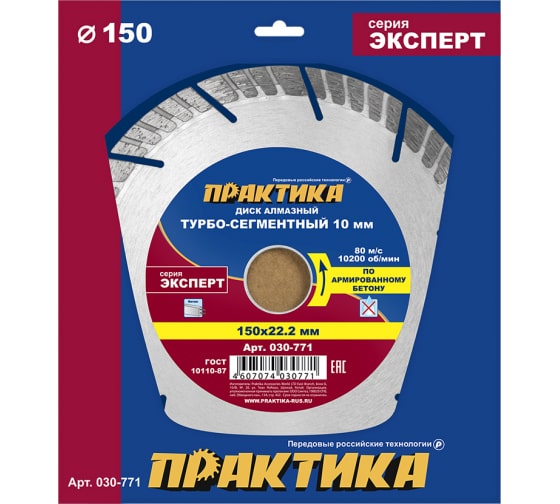 Диск алмазный турбосегментный ПРАКТИКА "Эксперт-бетон" 150х22 мм в Комсомольск-на-Амуре
