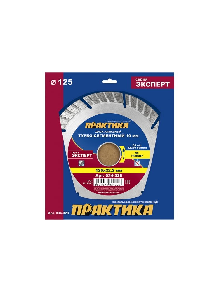 Диск алмазный турбосегментный ПРАКТИКА "Эксперт-гранит" 125*22 мм, сегмент 10 мм в Комсомольск-на-Амуре