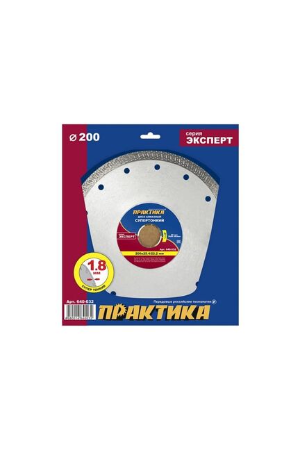 Серия «Эксперт». Тип TURBO. Сегмент 10 мм. ГОСТ 10110-87. Супертонкие. Специализированные диски для резки керамического гранита, твердой и мягкой керамической плитки, плит из искусственного и натурального твердого камня. Предназначены для установки на ручные угловые шлифовальные машины и стационарные плиткорезные станки. Высокая концентрация алмазов мелкой фракции в сегменте и минимально возможная толщина диска обеспечивают высокую скорость реза и идеальную чистоту кромок. Тело диска имеет усиление в районе посадочного отверстия для повышения жесткости и снижения вибраций. Диски серии «Эксперт» предназначены для профессионального применения и рекомендованы для большого объема работ. Для уменьшения пылеобразования и увеличении ресурса диска рекомендуется использовать охлаждение водой. Супер тонкий алмазный диск 200 мм для точного, аккуратного реза плитки, керамики и камня. Толщина 1,8 мм, длительный срок службы.