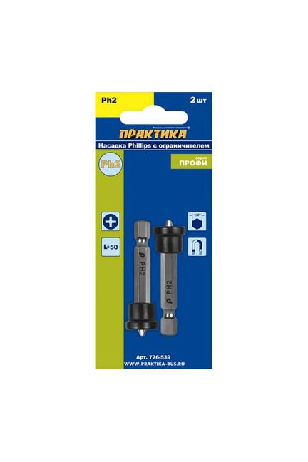 Биты PH2 50 мм с ограничителем: точный монтаж без срывов, для крепежа мебели и отделки, износостойкие, в комплекте 2 штуки.