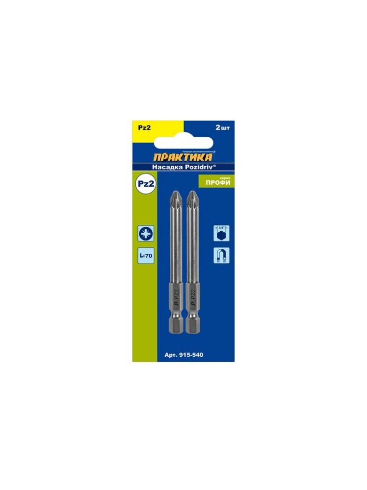 Бита отверточная ПРАКТИКА "Профи" PZ-2*70 мм, 2 шт