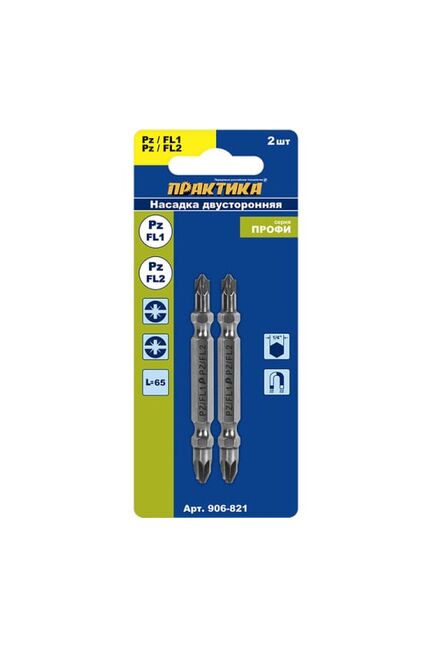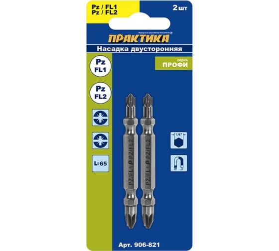 Бита отверточная ПРАКТИКА "Профи" PZ/FL1-PZ/FL2*65 мм, для электротехнических работ, двустроронняя