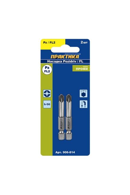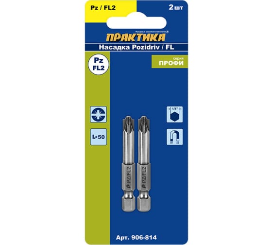 Бита отверточная ПРАКТИКА "Профи" PZ/FL2*50 мм, для электротехнических работ, 2 шт
