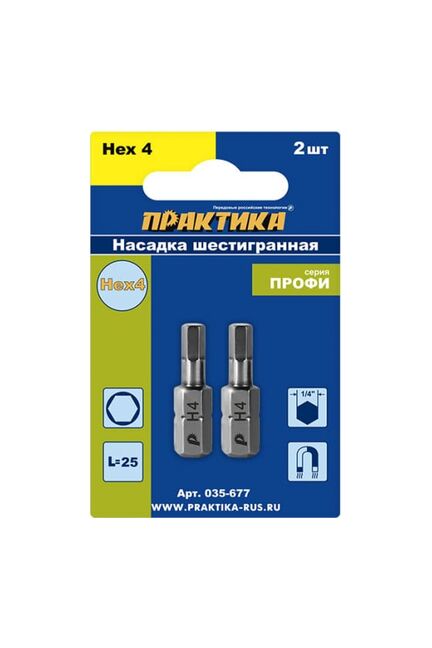 Бита ПРАКТИКА HEX 4 25 мм шестигранная, 2шт в Комсомольск-на-Амуре