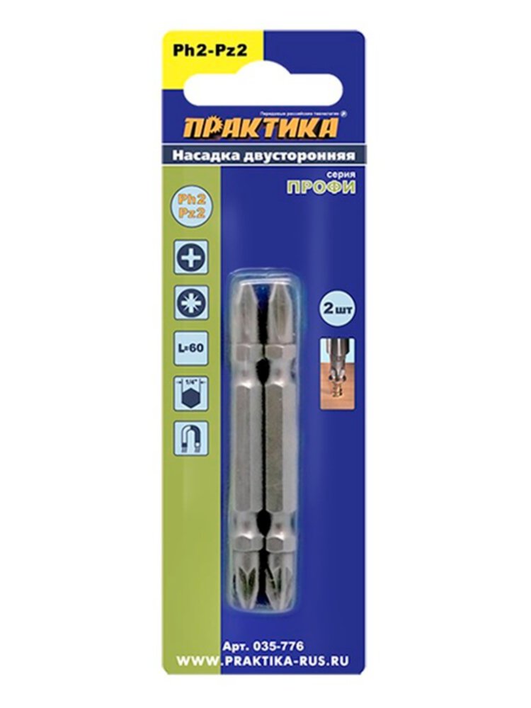 Бита ПРАКТИКА PH2/PZ2 60(65)мм, двусторонняя, 2шт