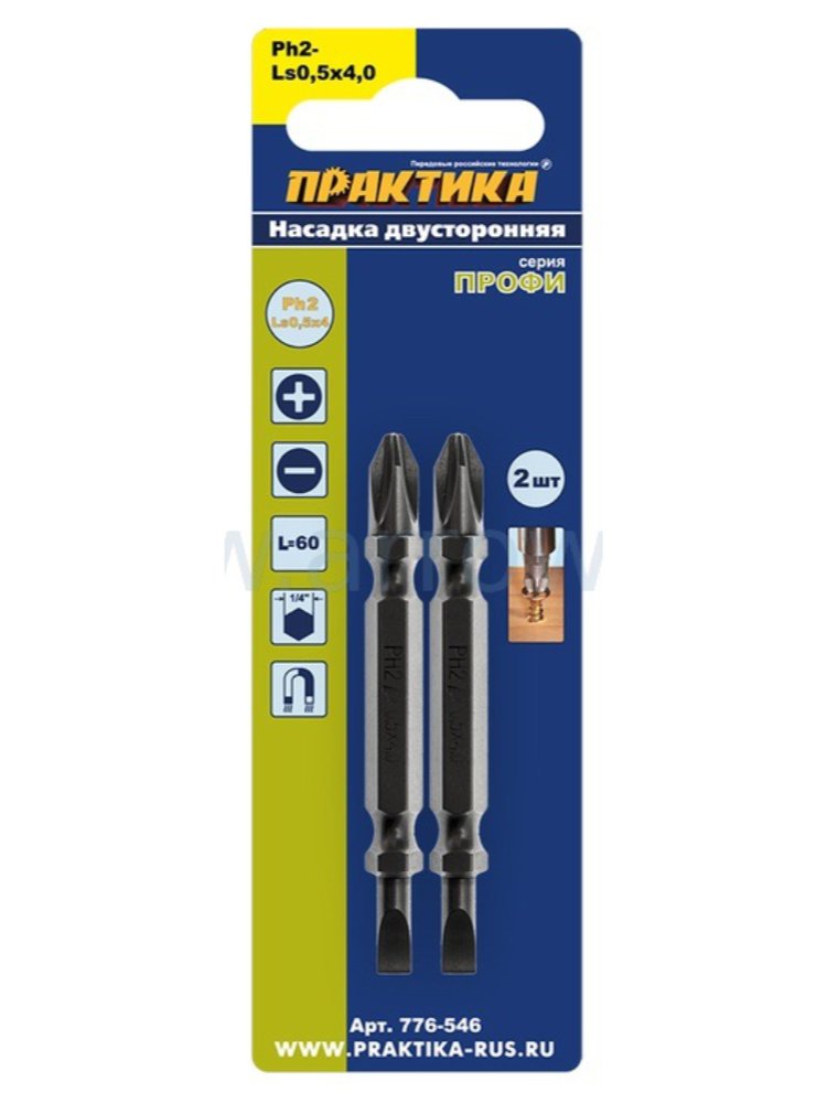 Бита ПРАКТИКА PH2/SL0,5*4 65 мм, двусторонняя, 2шт