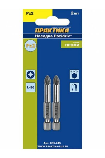 Биты PZ2 50 мм, 2 шт, износостойкая сталь, надёжная фиксация, для работ с крепежом Pozidriv любого типа, подходят для шуруповёртов.