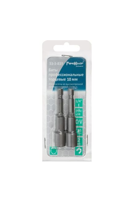 Торцевая бита 10x65 мм, усиленная, для шуруповёрта, 2 шт. Прочная, долговечная, подходит для профессионального и домашнего использования.