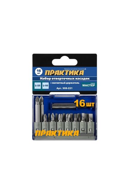 Набор бит ПРАКТИКА "Мастер" PH, PZ, Torx Tamper, HEX, SL - 25 мм, PH, PZ - 50 мм, держатель, 16 шт в Комсомольск-на-Амуре