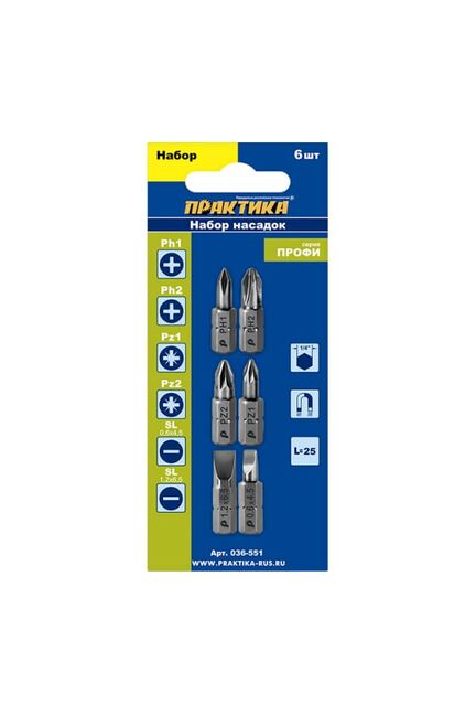 Набор бит ПРАКТИКА "Профи" PH1,2 - 6 шт; PZ1,2; LS 2 шт*25 мм
