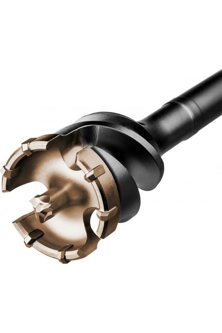 Проломной бур SDS-Max KRAFTOOL 29355-65-990 предназначен для бурения особо прочных материалов,таких как бетон,камень,кирпич. Применяется с перфораторами,мощность которых более 1000 Вт. Наилучшим образом подходит для прокладывания кабелей большого сечения,трубопроводов,монтажа магистральных линий кондиционеров и других работ. Бур изготовлен из высококачественной инструментальной стали,а монолитная конструкция головки режущей части обеспечивает повышенную прочность. Благодаря специальной технологии производства минимизируется радиальное и торцевое биение,возникающее при высоких нагрузках. Спираль бура способствует быстрому и эффективному отводу сверлильной пыли из рабочей зоны и уменьшает нагрев инструмента. Оснастка относится к профессиональному классу,что гарантирует ее высокую износостойкость и длительный срок эксплуатации. Подходит для перфораторов с системой крепления SDS-Max. Бур SDS-max 65×890/990 мм: быстрые и чистые отверстия в бетоне и кирпиче, прочная сталь, высокая износостойкость, точное бурение.