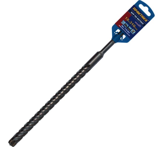 Бур SDS plus 18x310 мм: надежная работа по бетону, строениям и камню, высокая износостойкость, точность и совместимость с большинством перфораторов.