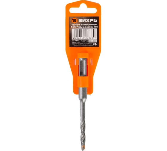 Бур Вихрь предназначен для перфораторов с системой крепления SDS-Plus. Применяется для бурения в бетоне, кирпиче и камне. Бур изготовлен из стали 45Х. Наконечник бура изготовлен из твердого сплава ВК8. Оснастка подходит для интенсивных нагрузок. Бур SDS plus 6x110x50 мм для сверления бетона и кирпича, высокая прочность, быстрое сверление, устойчивая твердосплавная головка.