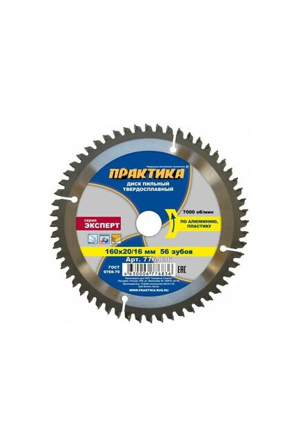 Диск пильный по алюминию ПРАКТИКА 160*20/16 мм, 56 зубов в Комсомольск-на-Амуре