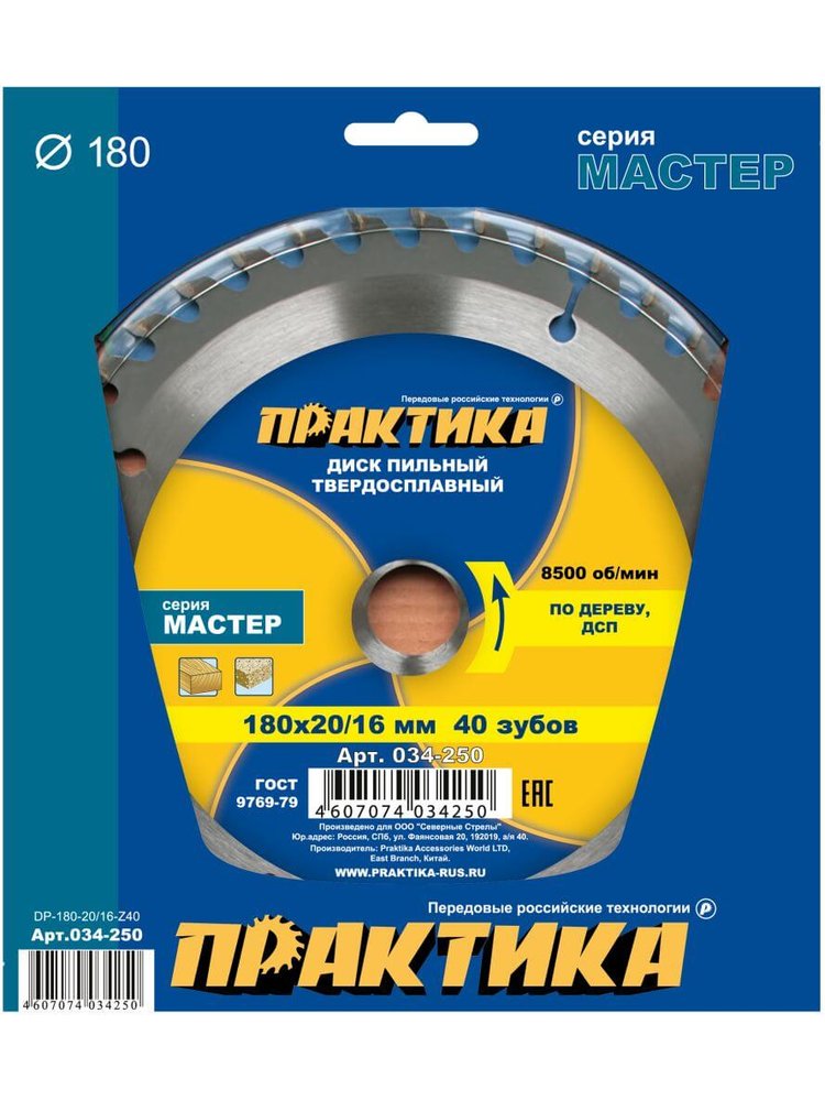 Диск пильный по дереву, ДСП ПРАКТИКА 180 * 20\16мм, 40T в Комсомольск-на-Амуре