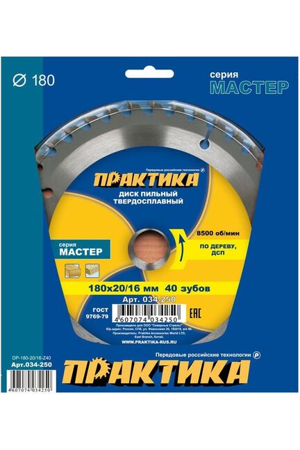 Диск пильный по дереву, ДСП ПРАКТИКА 180 * 20\16мм, 40T в Комсомольск-на-Амуре