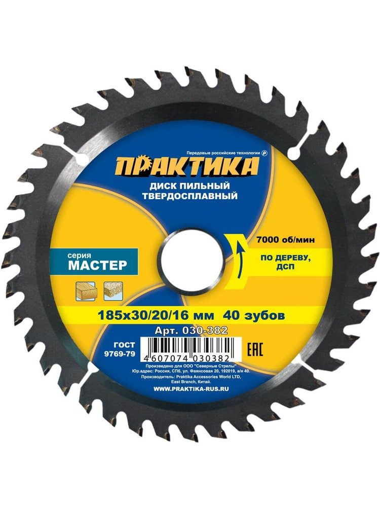 - Диаметр – 185 мм, с универсальными посадочными отверстиями 30/20/16 мм, подходит для большинства пил и торцовочных станков.
