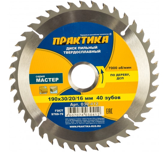 Диск пильный по дереву, ДСП ПРАКТИКА 190 * 30\20мм, 40T в Комсомольск-на-Амуре