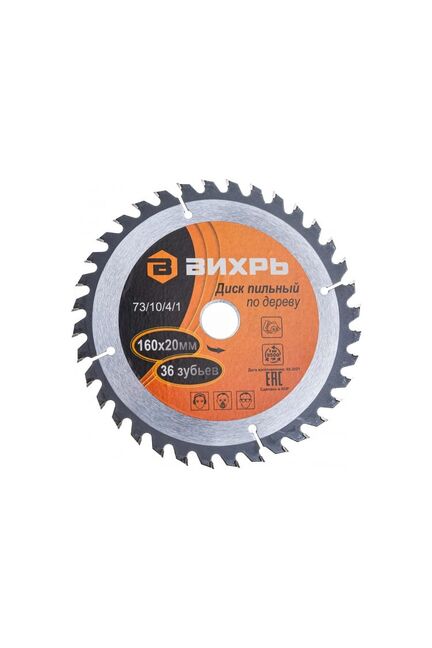 Диск пильный по дереву ВИХРЬ 160х20 мм,36 зубьев+кольцо 16/20 в Комсомольск-на-Амуре