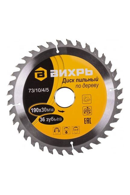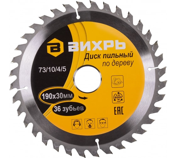 Диск пильный по дереву ВИХРЬ 190х30 мм,36 зубьев