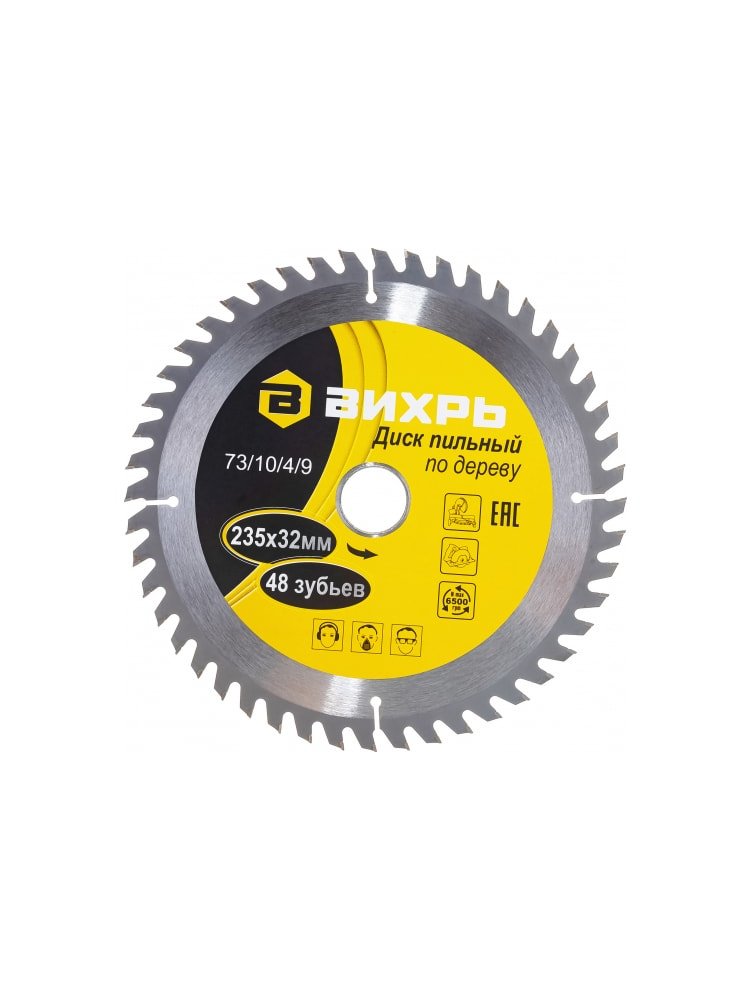 Диск пильный по дереву ВИХРЬ 235х32 мм,48 зубьев+кольцо 30/32
