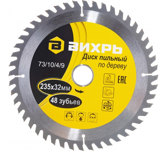 Диск пильный по дереву ВИХРЬ 235х32 мм,48 зубьев+кольцо 30/32 в Комсомольск-на-Амуре