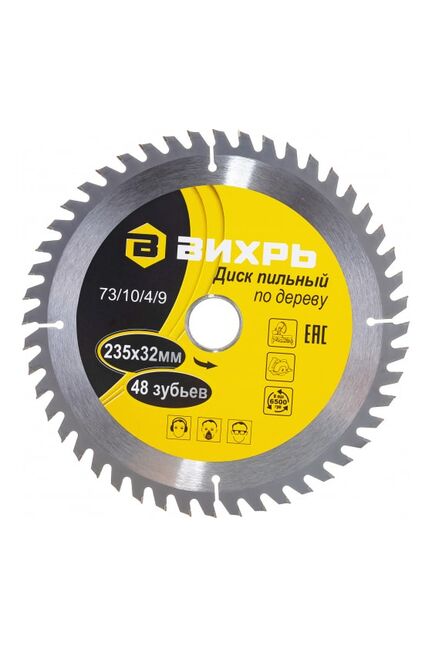 Диск пильный Вихрь предназначен для циркулярных и торцовочных пил. Применяется для реза по дереву и его производным. Диск оснащен твердосплавными напайками и имеет специальную заточку для качественной распиловки заготовок. В комплекте поставляется переходное кольцо с диаметра 32 мм на 30 мм. Пильный диск 235 мм с 48 зубьями и кольцом 30/32 для чистого реза по дереву, ДСП и фанере, подходит для большинства циркулярных пил.