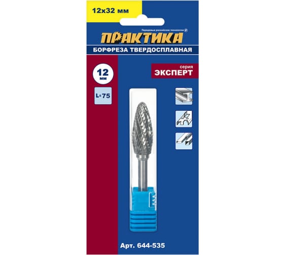 Борфреза твердосплавная ПРАКТИКА 12*32 мм, хвостовик 6 мм, тип H, эллипсовидная в Комсомольск-на-Амуре