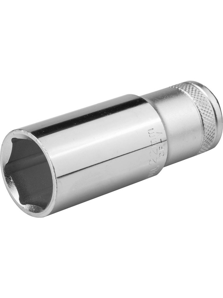 Профессиональный инструмент. Обладает высоким ресурсом даже при интенсивных работах Удлинённая торцевая головка 1/2" 22 мм: профессиональная сталь, надежная фиксация, удобство в труднодоступных местах, износостойкость.