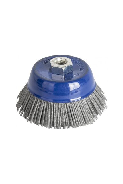 посадка - М14, материал проволоки - полимер абразив (абразивный нейлон), форма проволоки - прямая, диаметр - 65 мм, максимальная скорость - 12500 об/мин Чашеобразная кордщетка 65 мм М14 для МШУ: эффективно удаляет ржавчину и краску, подходит для зачистки труднодоступных поверхностей.